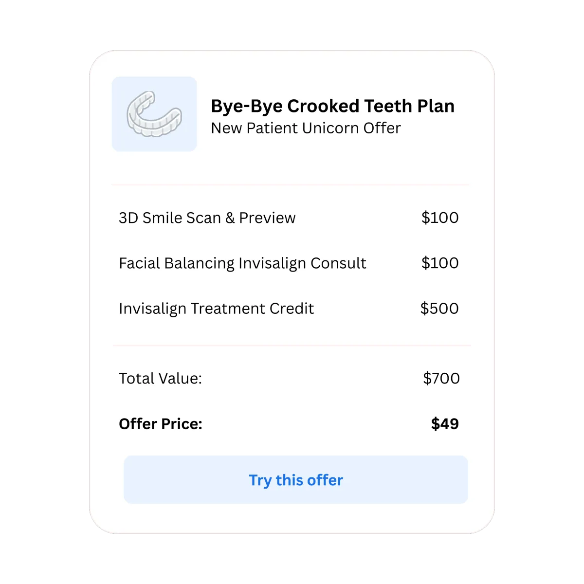 Create your first high-value, pre-qualified Invisalign offer during onboarding.